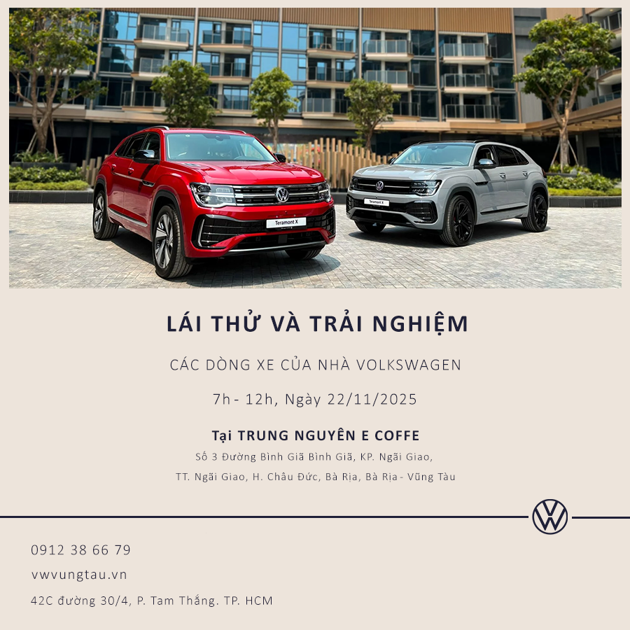 Volkswagen Vũng Tàu trân trọng thông báo tổ chức Chương trình Lái thử xe Volkswagen dành cho Quý khách hàng đang quan tâm các dòng xe chuẩn châu Âu, an toàn và hiện đại. Đây là cơ hội để khách hàng trực tiếp cảm nhận khả năng vận hành, sức mạnh động cơ và các công nghệ tiên tiến trên những mẫu xe nổi bật nhất của Volkswagen.